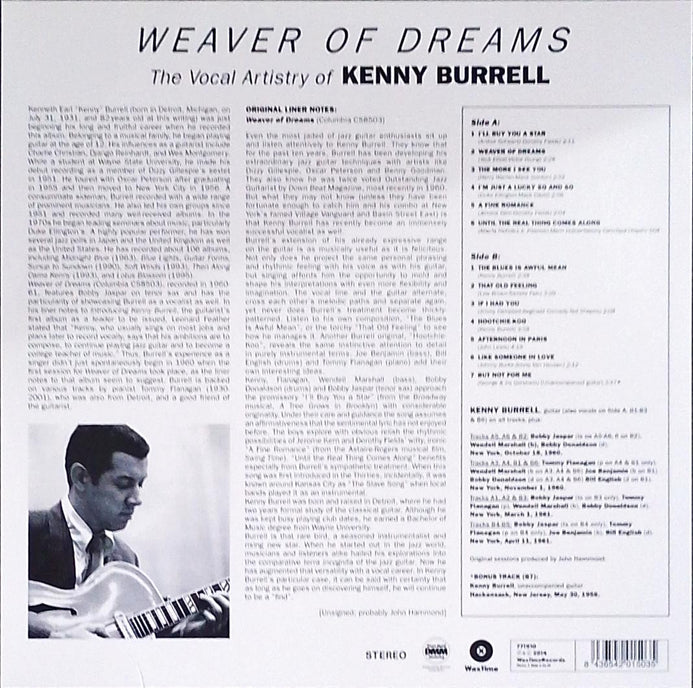 Immerse yourself in the timeless swing and soulful sophistication of Kenny Burrell’s “Weaver of Dreams”, a must-have for jazz aficionados and vinyl collectors alike. Originally recorded in New York between 1960-61 and now presented in this prized 2014 Columbia pressing, this classic album showcases Burrell’s warm guitar tones and rare vocal moments that helped define cool jazz guitar artistry. Pressed on rich analogue vinyl, this edition captures the intimate interplay with jazz greats like Tommy Flanagan and Wendell Marshall, making it a standout addition to any serious jazz collection. Whether you’re chasing a vintage sound or seeking a standout reissue for your shelf, Weaver of Dreams bridges bebop, blues and classic standards with impeccable swing and groove.